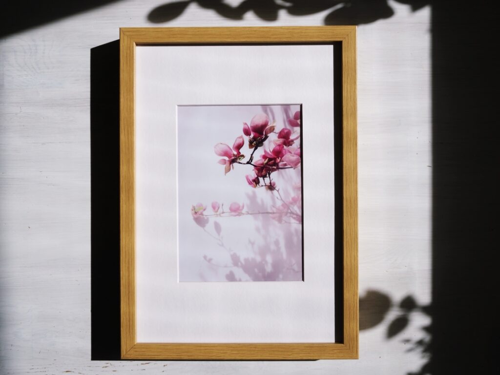 Autorská barevná fotografie zachycující rozkvetlé magnolie v jemném přirozeném světle, s důrazem na hru světla a stínů. Obraz, který do prostoru vnáší klid, lehkost a něhu. Fotografie je vytištěna na kvalitním fotografickém papíru a zasazena do rámu s paspartou. Velikost fotografie: 13 × 18 cm. Celkový rozměr včetně rámu: 20 × 30 cm. Připraveno k zavěšení.