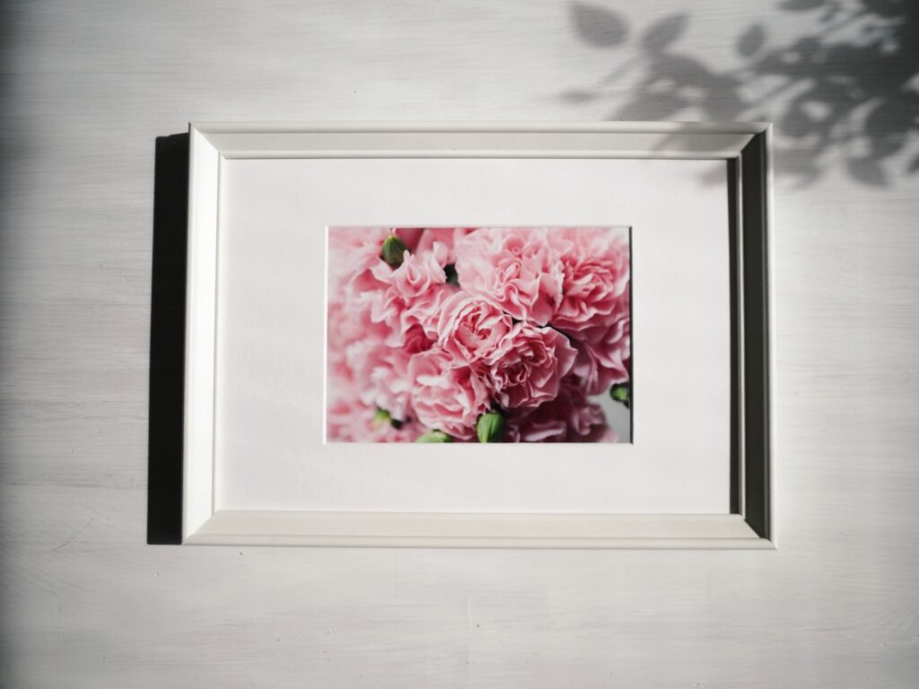 Darujte kytici karafiátů, která nikdy neuvadne. Autorská fotografie luxusně adjustována v paspartě a rámu velikosti 20x30. Originální dekorace na zeď, která zútulní váš domov.